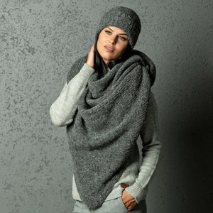 Chunky Alpaca scarf, chunky alpaca cap, knitted alpaca scarf, knitted alpaca cap, chunky alpaca hat, eco alpaca scarf, triangle alpaca scarf