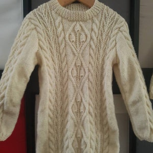 Girls’ sweater dress, cable knit dress, wool, puffed sleeves, size 2 years and 5 years, knitted dress, handmade, French yarn