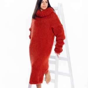 Hand Knit Mohair Dress,Chunky Long Sweater,Fuzzy Sweater Dress Big Turtleneck